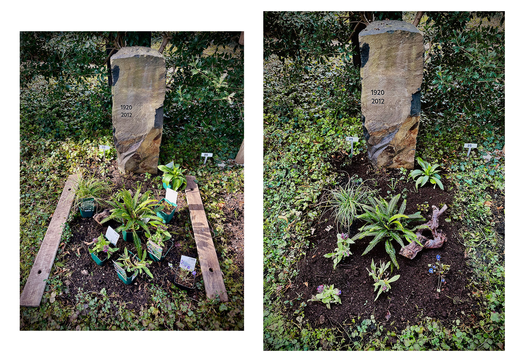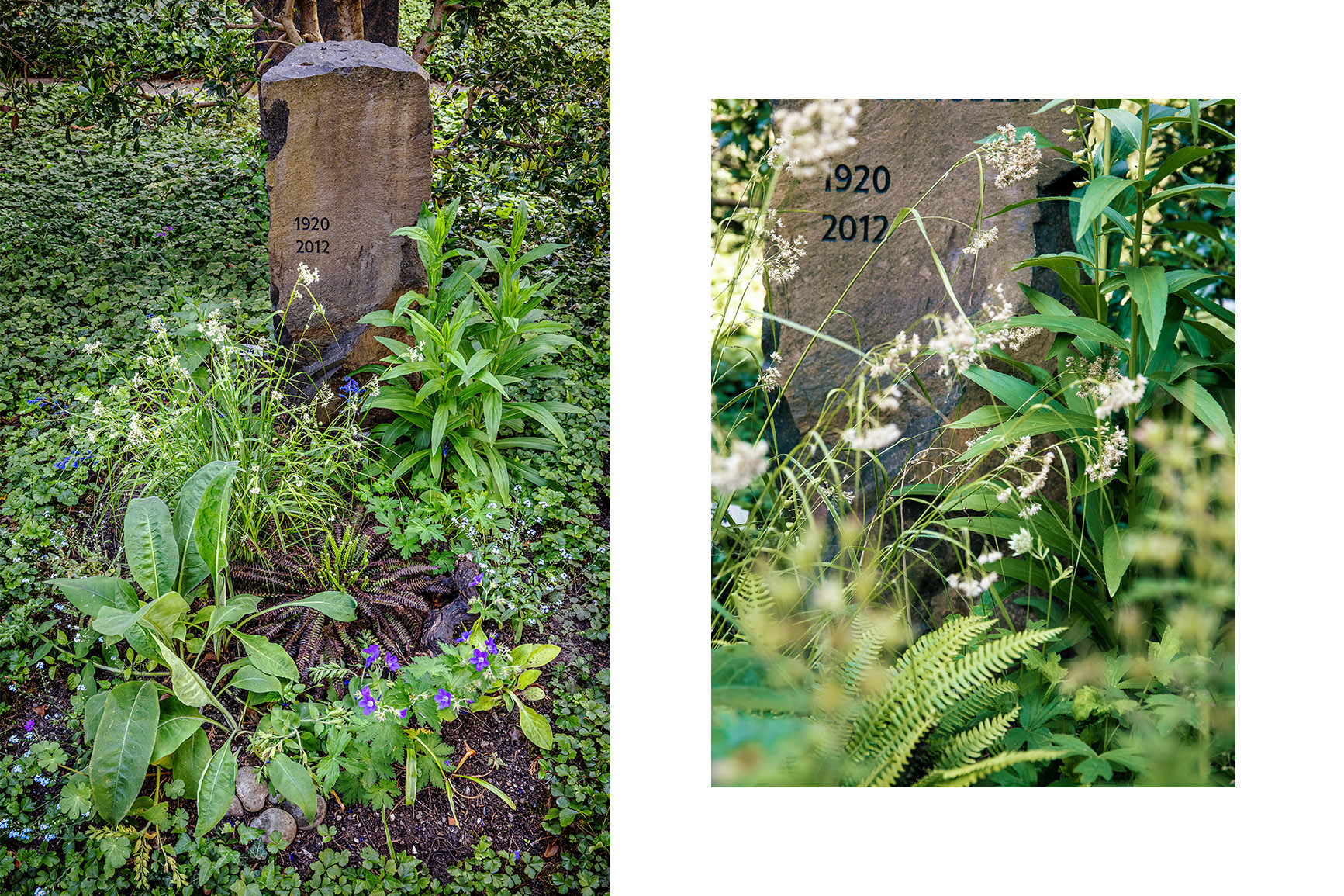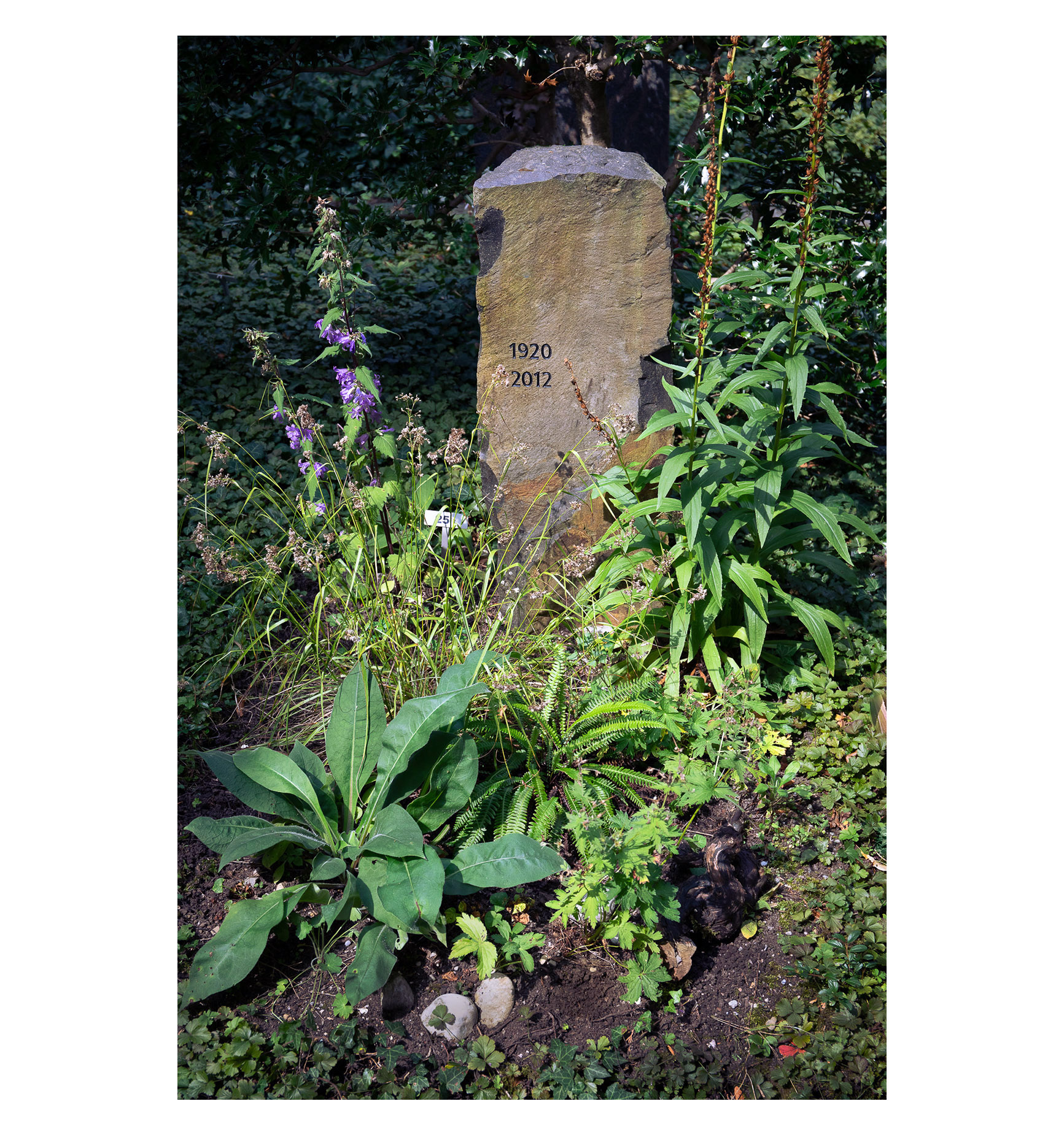Das Grab (Fläche ca. 0,7 m breit x 1,20 m lang) liegt unter grossen Bäumen an einem halbschattigen bis schattigen Standort mit nährstoffreichem, humosen Boden. Die ursprüngliche, saisonale Standardbepflanzung wurde durch eine naturnahe Gestaltung ersetzt, die nicht nur optisch ansprechend ist, sondern auch einen ökologischen Mehrwert bietet.